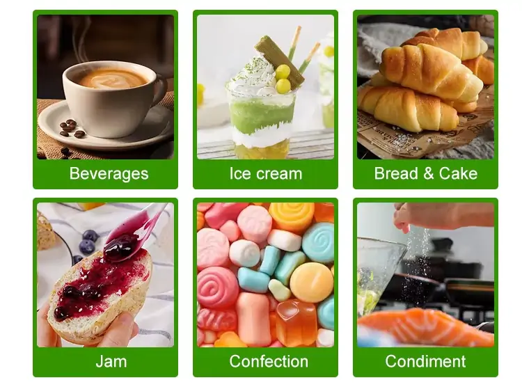 3. Confection & candy applications: bread,cake,Jams,common candy,No sugar candy, chewing gum, etc.