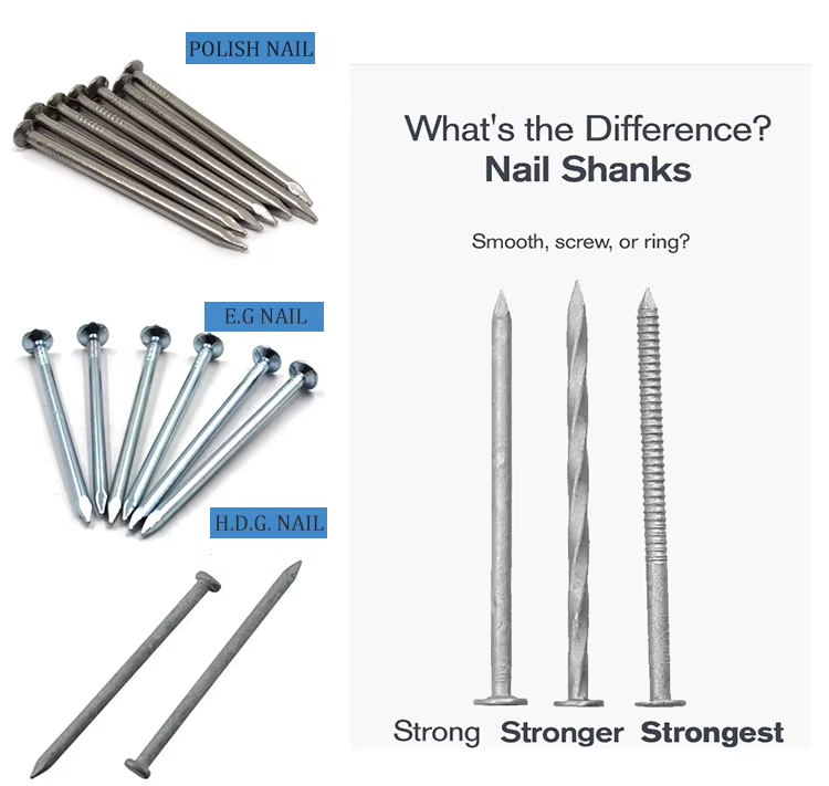 Smooth Shank: Classic choice for temporary fixtures or delicate moldings.