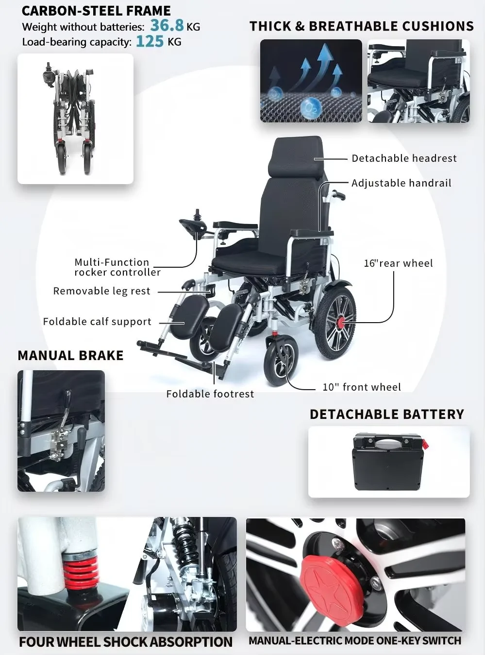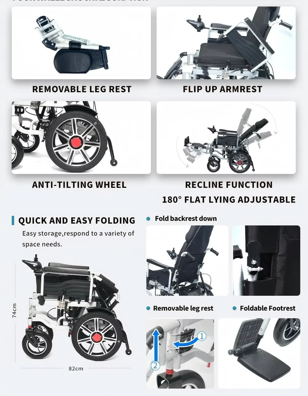 For obese individuals seeking a reliable and comfortable mobility solution, the electric wheelchair with a foldable lead-acid battery is an excellent choice. Its all-terrain capabilities, combined with the sturdy frame and comfort features, make it ideal for both indoor and outdoor use. With a powerful battery, convenient foldability, and advanced safety features, this wheelchair ensures that users can enjoy greater independence and freedom of movement.