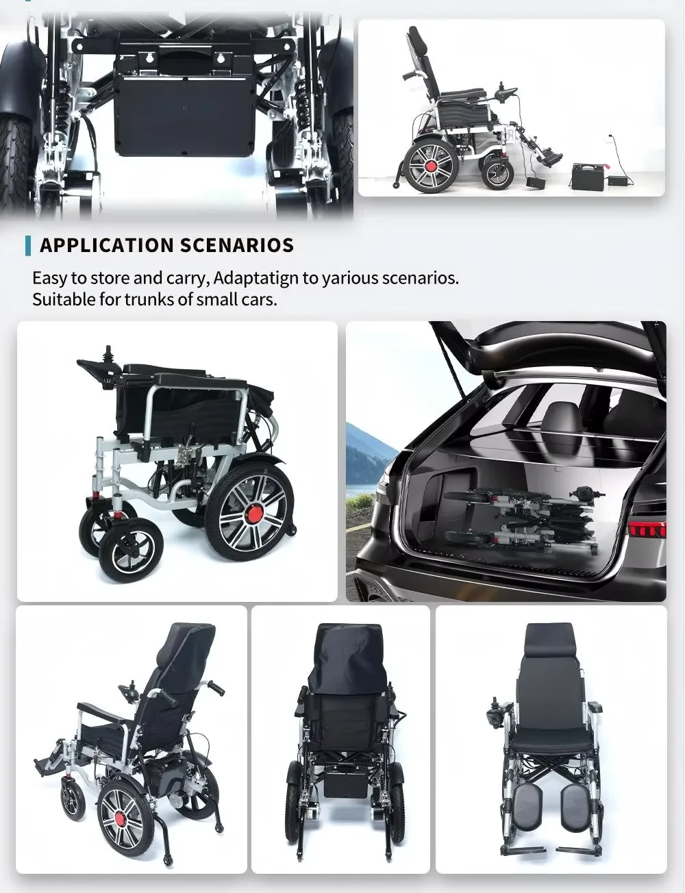 Personal mobility device.(Electric Wheelchairs,Manual Wheelchairs and Mobility scooter )REHABILITATION AIDS EXPERIENCED : 20 years ofindustry experience,integrating scientific re-search,production,and trade.AUTOMATIC PRODUCTION :Advanced production equipment, efficient production. Guaranteethe delivery time,at the same time guarantee the product quality.QUALITY ASSURANCE : Multiple process quality inspections,strict control of each productionlink to ensure product quality.INNOVATIVE AND FLEXIBLE : Provide high quality and high efficient OEM,ODM services per cus.tomer's design request.