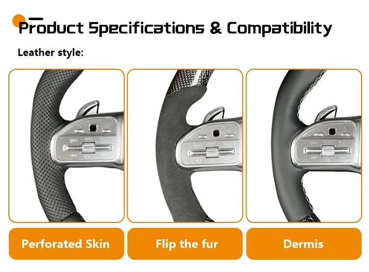 The Mercedes-Benz W223 W205 AMG Style Steering Wheel is crafted with the finest materials, ensuring durability and a luxurious feel. The carbon fiber accents provide a sporty and modern touch, while the leather stitching offers a premium, comfortable grip. The custom stitching allows you to personalize the wheel to match your car’s interior, creating a seamless blend of elegance and performance.