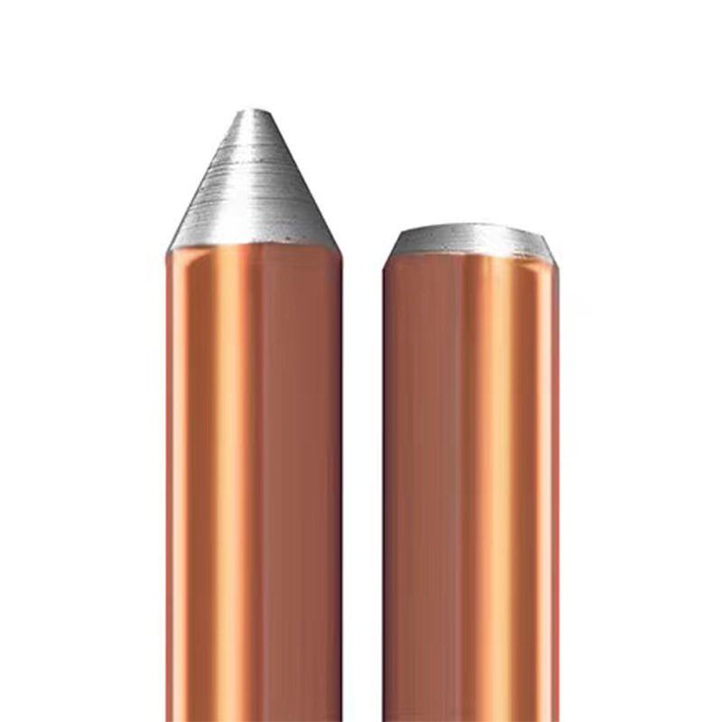The copper bonded steel grounding rod is made of high-quality low carbon steel with good softness and carbon content of 0.10%-0.30%. The special process is used to evenly cover the high conductive electrolyzer copper on the surface of the round steel, and the thickness is 0.25-0.5mm. This process can effectively slow down the oxidation speed of the grounding rod in the underground. The single root can be pointed and flat, and can be pointed and threaded on the roll. The two ends of the combination need to be threaded on the roll. The thread is processed by the roller thread groove, which maintains the close connection between the steel and copper, ensures high strength, and has excellent electrical grounding performance.