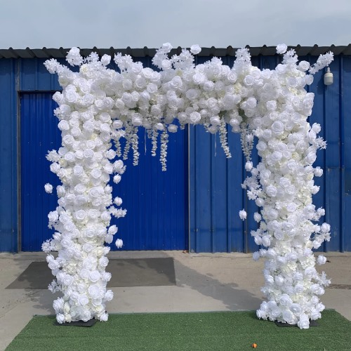 The arch is decorated with premium silk roses that look natural and vibrant. Each bloom adds depth and charm to the event. As a trusted silk flower manufacturer, we ensure every flower arch maintains high quality for repeated use.