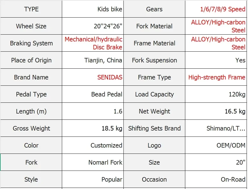 We are a bicycle factory(SENIDAS) with over 15 years of export experience. Our product range is very extensive;