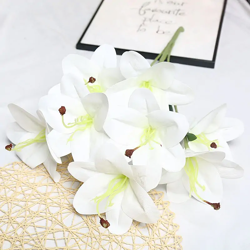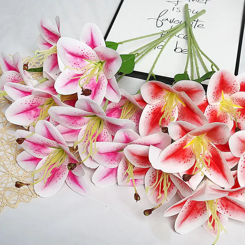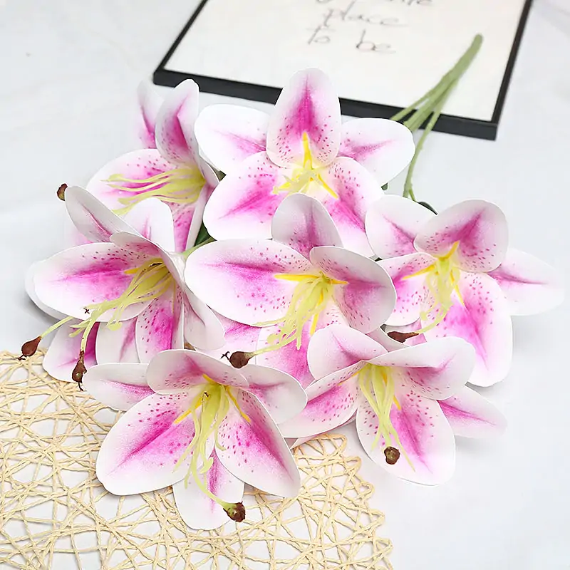 1.The 9-head 3D Artificial Lily Flower is an exquisite, high-end floral decoration perfect for both home and wedding settings. Featuring a vibrant and realistic design, this flower arrangement is ideal for enhancing various events. Below are its key features and uses: