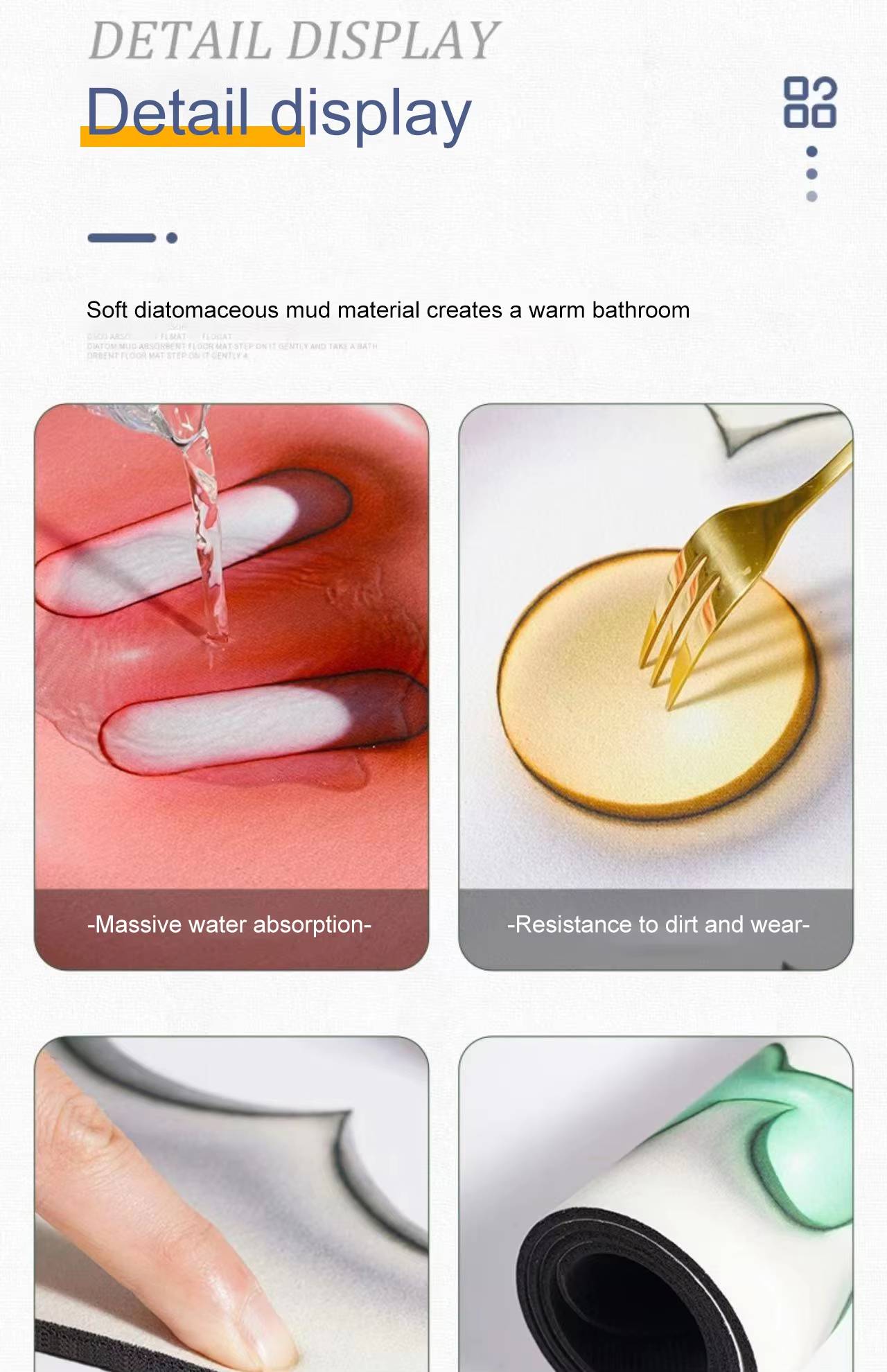 Made from high-quality fibers, the carpet resists daily wear. Heavy foot traffic does not reduce its quality. The material ensures long-lasting beauty. The Diatom Mud Mat component improves water absorption and floor protection.