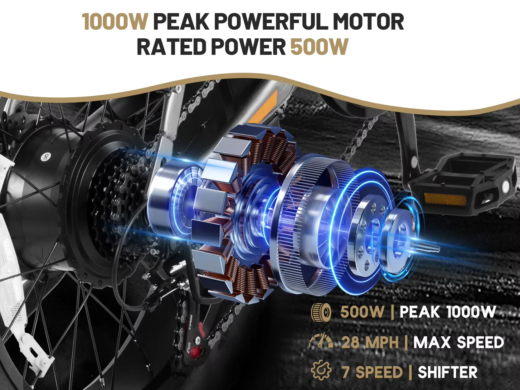 Unleash your inner adventurer with the Racer Fat Tire Ebike—engineered to dominate rugged trails, sandy beaches, and urban streets with unmatched power and precision. Built for thrill-seekers who refuse to compromise, this beast boasts a 1000W peak motor and a high-torque 70Nm controller, delivering explosive acceleration and effortless hill climbs. Reach speeds of 28 MPH while conquering mud, snow, or rocky terrain with confidence, thanks to its ultra-grippy 4-inch fat tires and rugged Front fork-suspension frame.