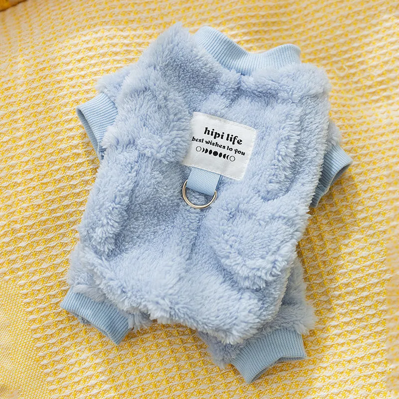 This pet outfit focuses on both warmth and practicality. The fleece fabric traps heat while remaining breathable, keeping your pet warm without overheating. The flexible design allows easy movement, making it comfortable for dogs to play, walk, or sleep. Its smooth texture prevents irritation, providing comfort even during long wear.