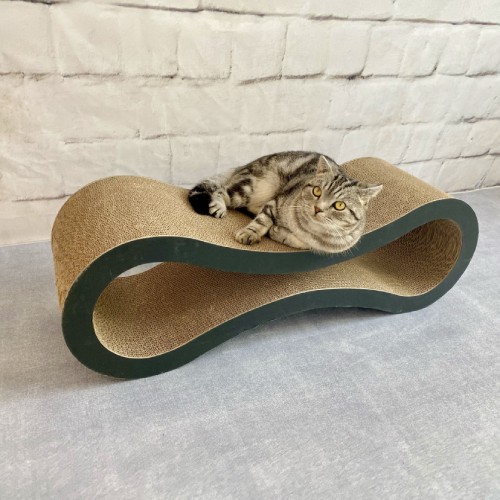 The lounge uses strong corrugated cardboard. It lasts longer than soft pads. Cats can scratch and stretch without damage to furniture. This design also fits well with cat trees. The board is light and easy to move.