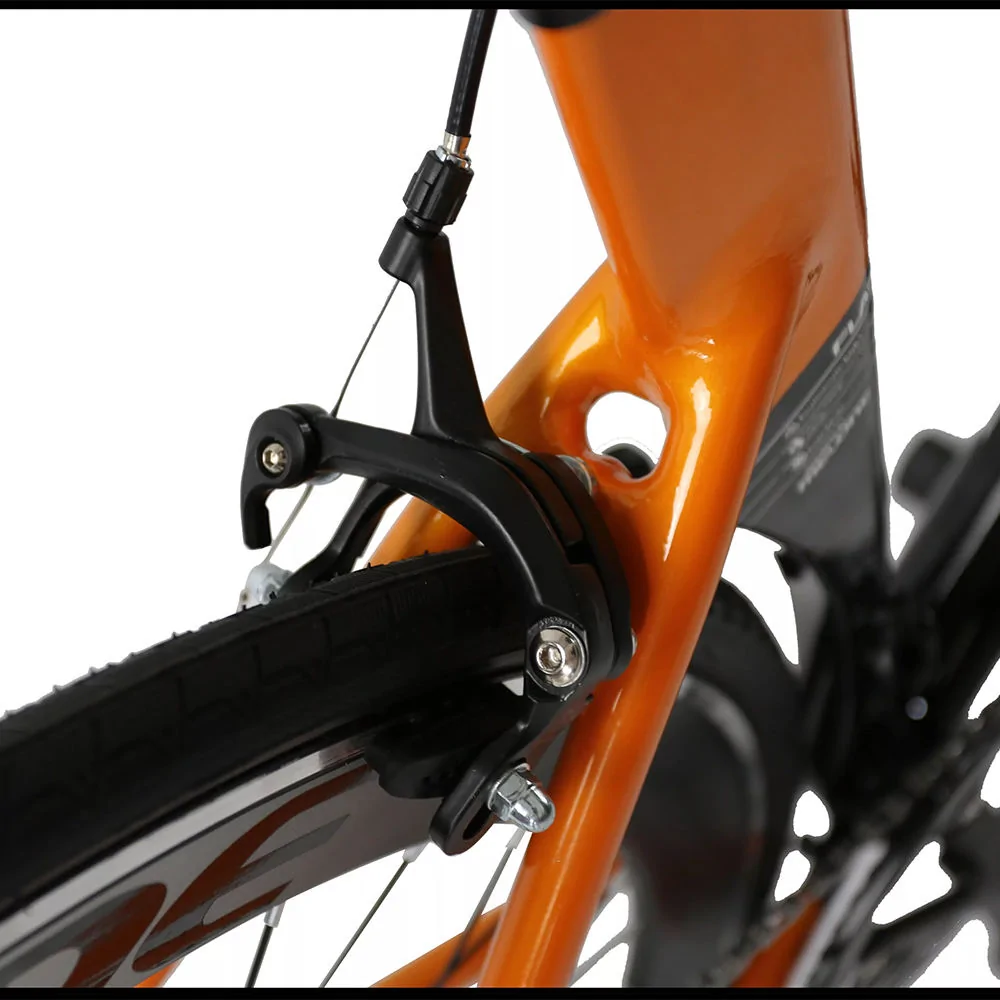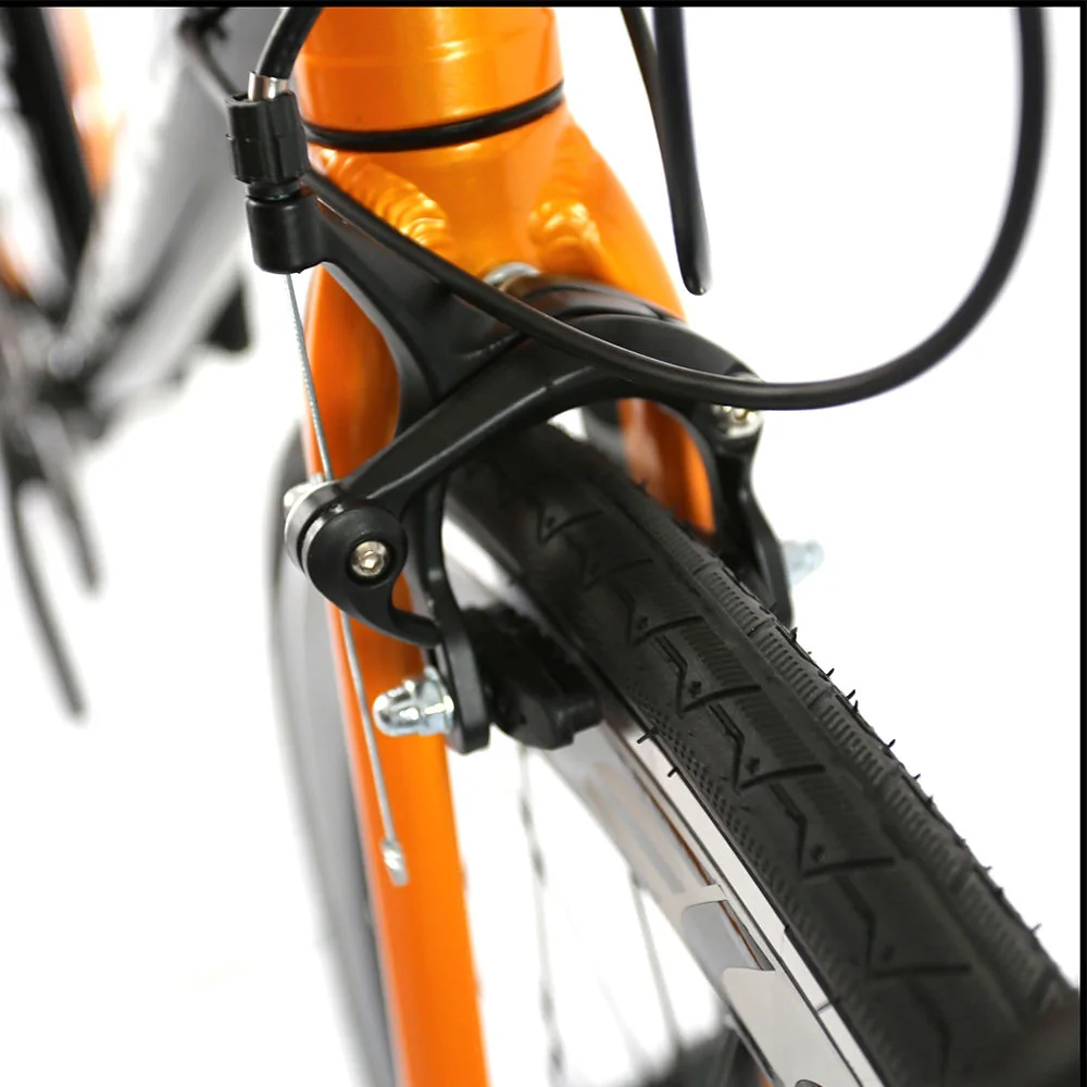 The aluminum alloy frame of this road bike provides the perfect balance between lightweight construction and durability. Designed for speed and efficiency, the frame reduces the overall weight of the bike, making it ideal for competitive racing and fast road cycling. The high-quality aluminum also ensures resistance to rust and wear, giving the bike long-lasting performance.