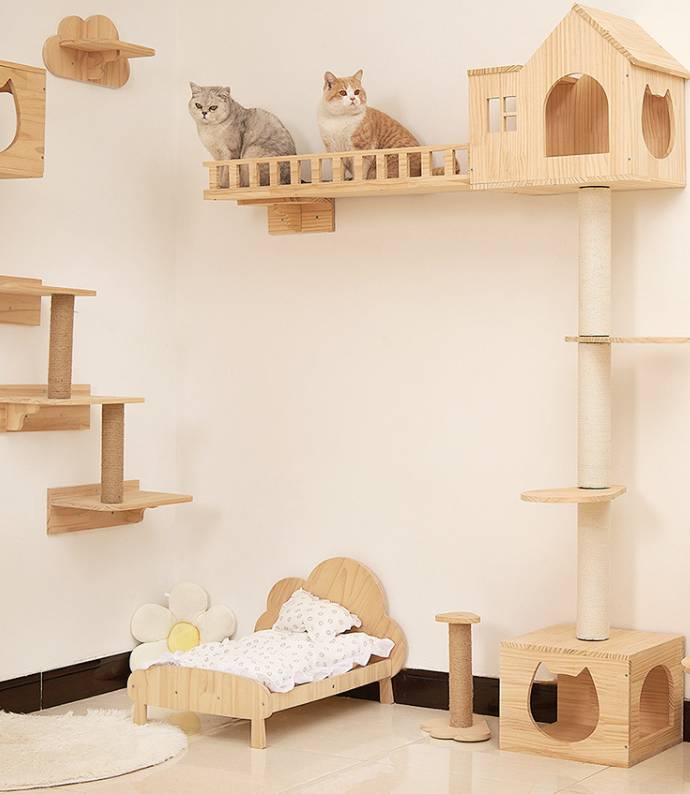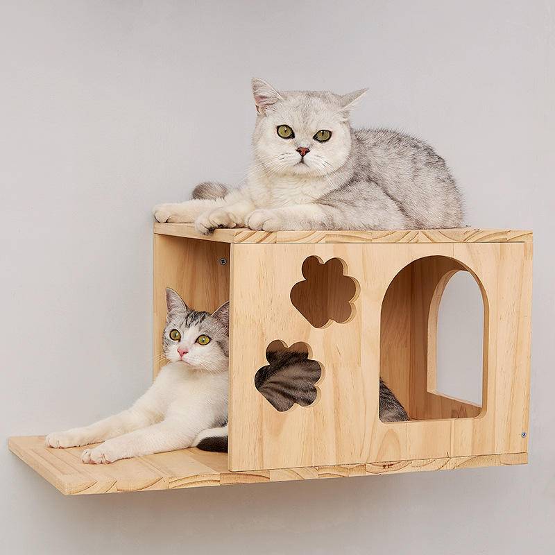 Cats love to climb and explore. A solid wood pine cat shelf gives them a safe space. Wall mounted pet shelves save floor space. This design fits well in small rooms. Cats enjoy sitting high and watching around. A wall cat playground brings joy to indoor pets.